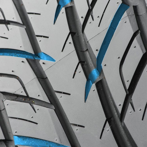 Важным элементом конструкции выступает глубокий протектор с широкими канавками малой кривизны (LAC), которые обеспечивают уверенное преодоление водяной плёнки и эффективно отводят влагу из пятна контакта. Такая структура позволяет сохранять стабильность даже во время интенсивных осадков, предотвращая возникновение аквапланирования и обеспечивая надёжную адгезию при маневрировании. При этом геометрия протекторных элементов способствует равномерному распределению нагрузки, что напрямую влияет на увеличение пробега и сохранение рабочих характеристик на протяжении всего срока эксплуатации.